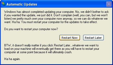 I can barely imagine the shock and awe that would follow a Microsoft introduction of something important that just worked when you installed it without scaring the bejeez out of people beforehand.